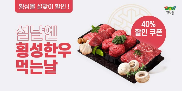 ▲‘설날엔 횡성한우 먹는 날’ 횡성몰 40% 할인 쿠폰. 강원도경제진흥원 제공 |