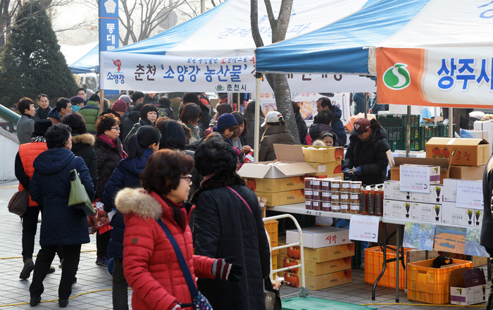 ▲지난해 동대문구 설맞이 직거래장터에서 주민들이 상품을 둘러보고 있다.(동대문구 제공) |