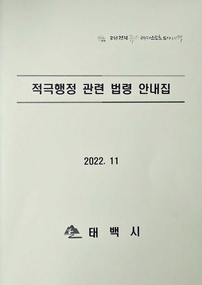 이상호 태백시장은 “적극행정 관련 법령 안내집이 태백시 적극행정 문화정착의 마중물 역할을 하길 기대한다.”라고 밝혔다.