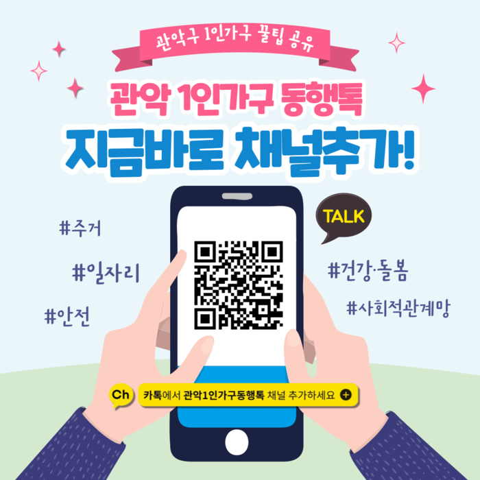 이를 위해 구는 카카오톡 채널을 활용하여 1인가구 관련 정책을 통합 관리하고 효율적으로 홍보하는 매체인 ‘관악 1인가구 동행톡’을 개설했다.
