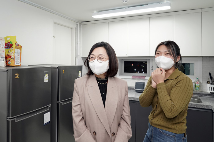 | ▲입주민의 안내로 여성 1인 가구 쉐어하우스를 둘러보는 은시장. |