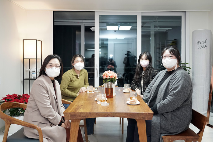 | ▲여성 1인 가구 쉐어하우스를 찾은 은시장 입주민과 함께. 성남시 제공 |