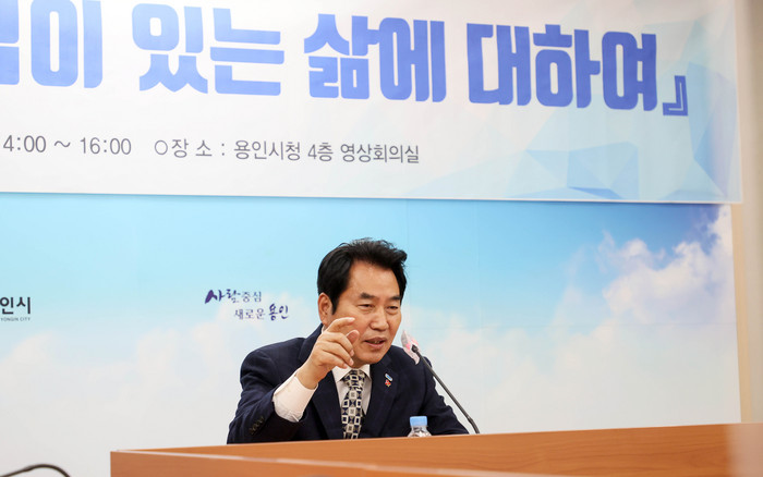 백 시장은 이날 ‘신념이 있는 삶에 대해서’를 주제로 군인, 국회의원, 용인시장이라는 세 가지 직업을 경험하며 ‘정의’라는 신념을 갖고 어떤 노력을 해 왔는지 진솔하게 풀어냈다.