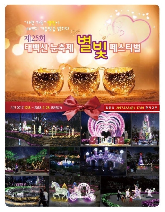 시 관계자는 “가족, 연인, 친구와 함께 별빛 페스티벌에 꼭 오셔서 아름다운 추억 담아가시길 바라며, 내년 1월 18일부터 시작되는 제26회 태백산 눈축제에도 많은 관심과 성원을 바란다”고 전했다.