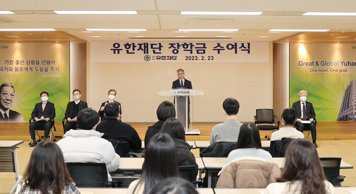 유한재단(이사장 김중수)은 2월 23일 오전 유한양행 4층 대강당에서 ‘2023년 유한재단 장학금 ’수여식을 가졌다.