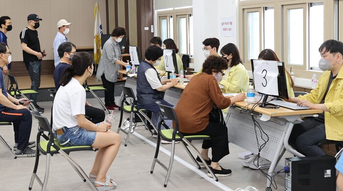 ▲ 수영구가 지난 20일부터 구민의 긴급 생활안정 지원을 위해 1인당 10만원의 선불카드를 지급하고 있다. 수영구 제공 |