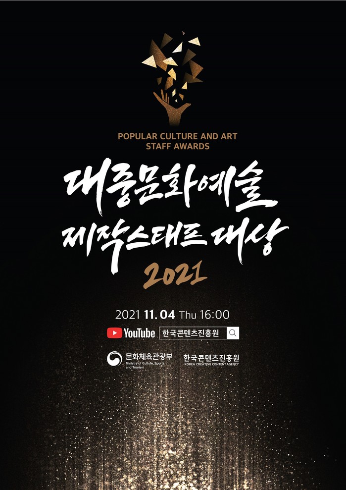 문화체육관광부와 한국콘텐츠진흥원은 ‘2021 대중문화예술 제작스태프 대상’ 시상식을 오는 4일 온라인 개최한다.