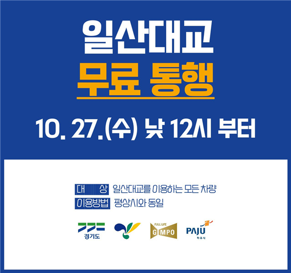 [로컬세계 이혁중 기자]경기도가 한강 다리 28개 중 유일하게 통행료를 내는 일산대교에 대해 27일 12시(정오)부터 무료통행을 실시한다.