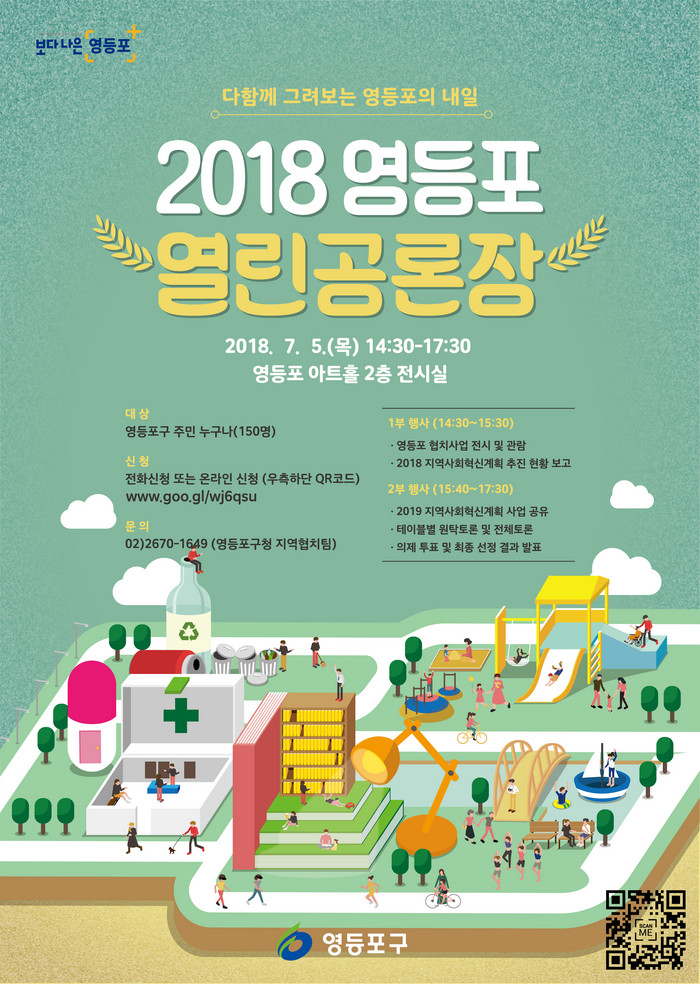열린공론장은 구민들이 한자리에 모여 협치를 실현할 향후 정책을 논의하는 자리로 ‘다함께 그려보는 영등포의 내일’이란 슬로건을 바탕으로 열린다.