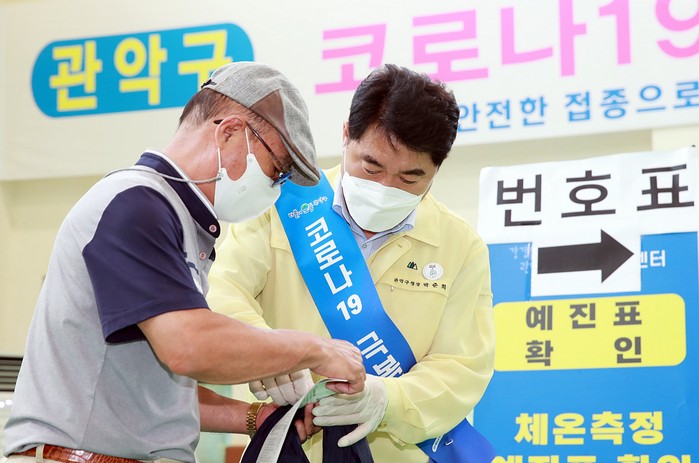 오후 1시, 박 구청장은 또다시 제1예방접종센터를 찾아 장장 3시간가량 접종 대상 어르신들에게 직접 번호표를 나눠주며 예방접종을 독려하고, 불편사항은 없는지 꼼꼼히 살폈다.