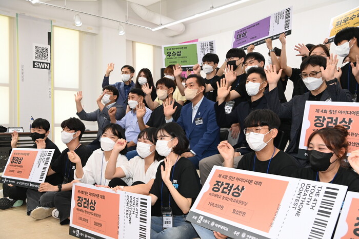 | ▲ 지난 8월28일 제4회 청년아이디어톤대회 시상식 후 이재준 수원특례시장과 청년들이 기념촬영을 하고 있다. |