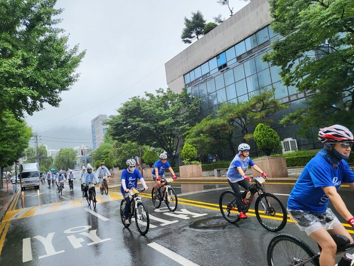이날 행사는 최방기 남북통일운동 국민연합 마산공동회장의 만세 3창을 끝으로 종료 후 우중에도 합포구청에서 삼각지 공원까지 평화의 페달을 힘차게 밟으며 행사를 마무리했다.
