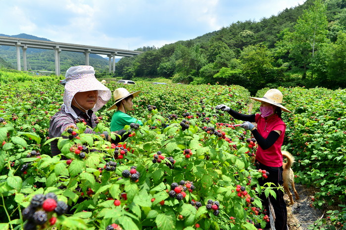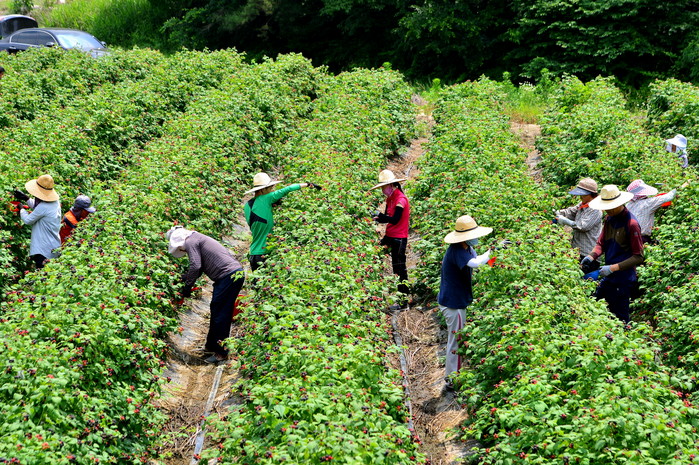 지난 15일 군 자치행정과 직원들은 고수면 상평리 300여 평 복분자밭을 찾아 농번기 일손부족으로 어려움을 겪고 있는 농가의 수확을 도왔다.