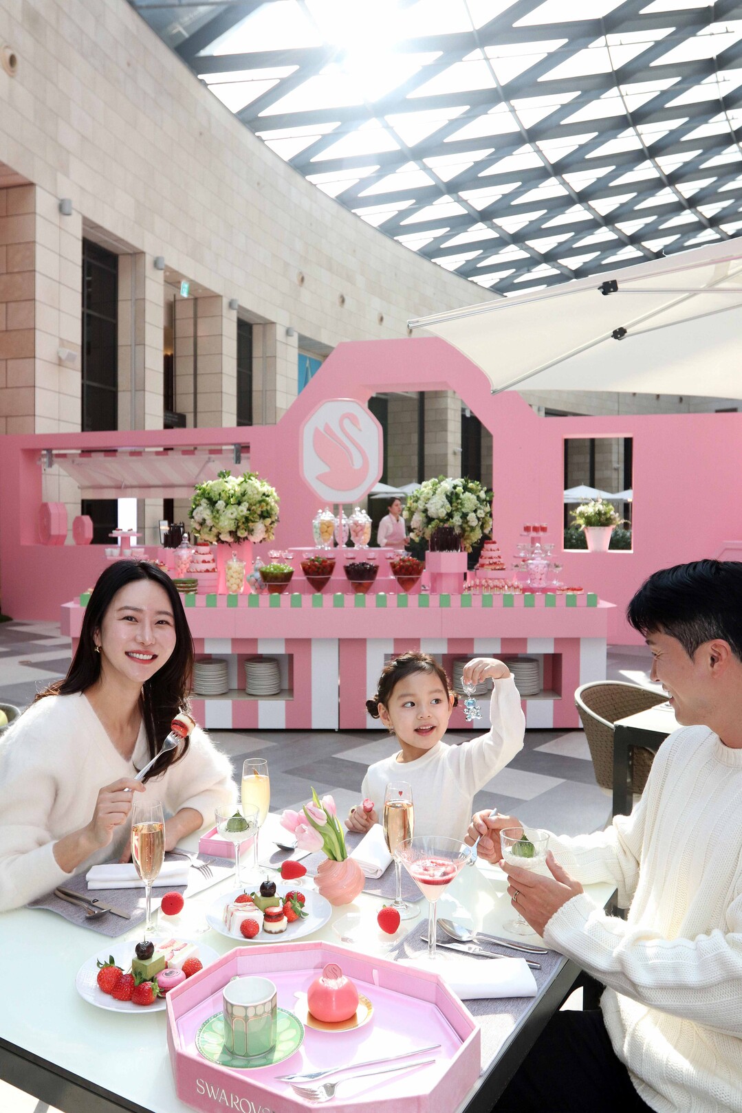 겨울 시즌을 맞아 인천 영종도 파라다이스시티가 3월 15일까지 모던 크리스털 라이프스타일 브랜드 스와로브스키와 협업해 시즌 한정 프로모션을 펼친다. 이날 18일 딸기 뷔페가 진행되는 파라다이스시티 ‘가든바이라쿠’에서 모델들이 제철 딸기 디저트와 웰컴 드링크를 즐기며 스와로브스키의 고급스러운 핑크빛 감성으로 연출된 겨울 호캉스 분위기를 만끽하고 있다.