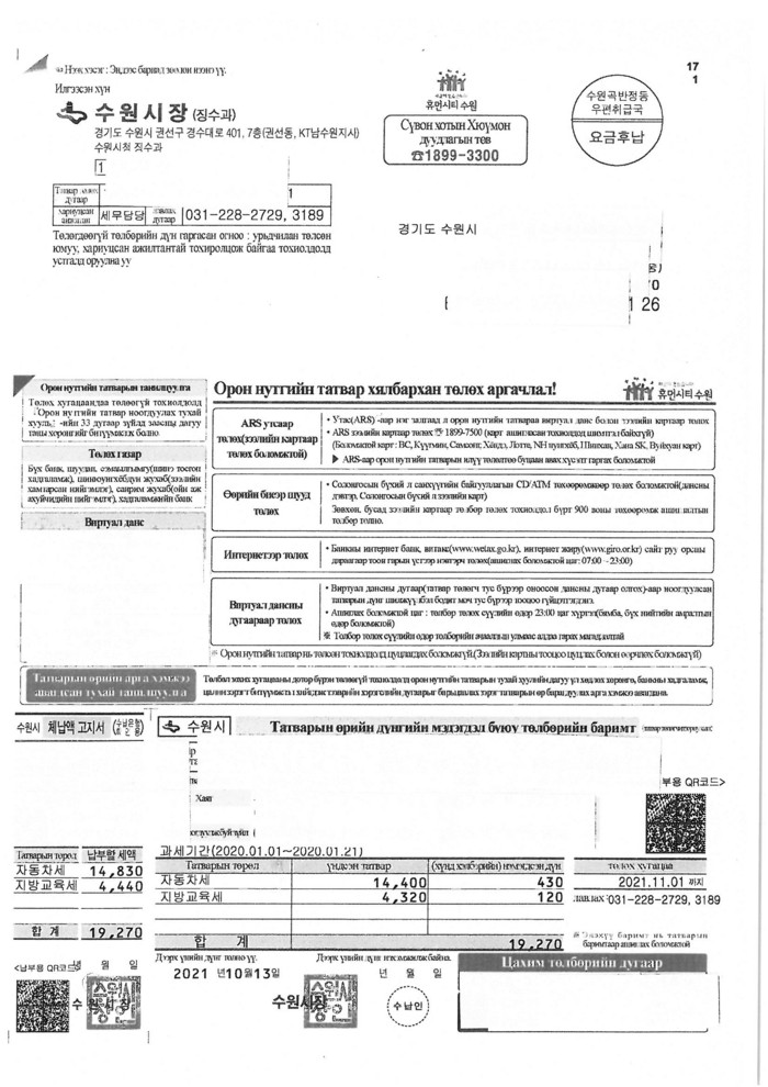 [로컬세계 김병민 기자]경기 수원시는 언어 장벽·정보 부족으로 인해 세금 납부에 어려움을 겪는 외국인들을 위해 몽골어·베트남어·우즈베키스탄어·중국어·영어·한국어 등 6개 국어로 체납고지서를 제작해 지방세를 체납한 외국인 3969명에게 발송했다고 18일 밝혔다.