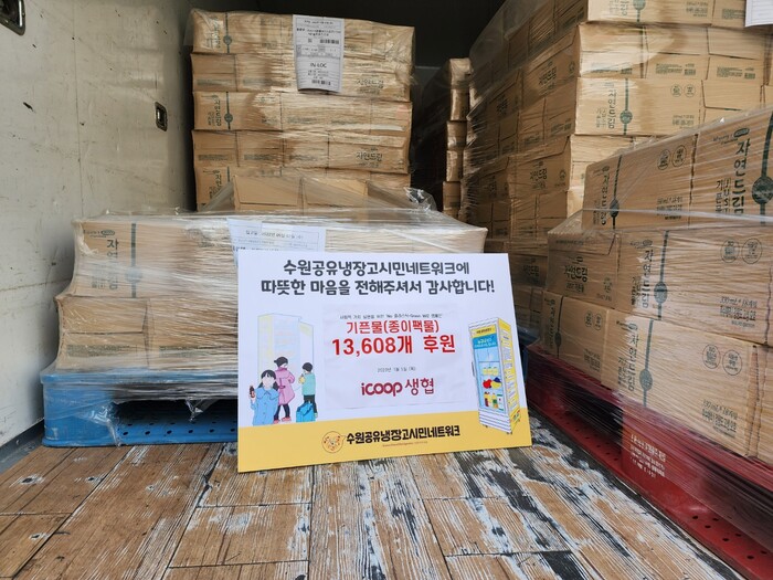 [로컬세계=김병민 기자]경기 수원아이쿱생협‧수원미래아이쿱생협과 kt wiz가 ‘No 플라스틱 캠페인’ 확산을 위해 수원시 공유냉장고 32곳에 1월 5일, 1만3608개를 추가로 전달하며 총 3만9천여개의 종이팩물(기픈물)을 기부했다.