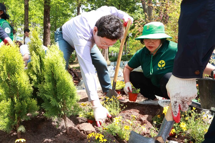 이 시장은 “시민들과 함께 하는 정원 가꾸기 행사를 확대하기 위해 지난해보다 예산을 늘리고 장소도 옮겼다. 올해 세 번째로 열린 행사에 참여해 용인을 아름다운 고장, 따뜻한 생활 공동체로 거듭나도록 해줘 감사하다”며 “시민들이 정원을 가꾸며 힐링하고 가족 간의 화목한 시간도 보내며 마음의 정원에 아름다운 꽃을 많이 심길 바란다”고 말했다.