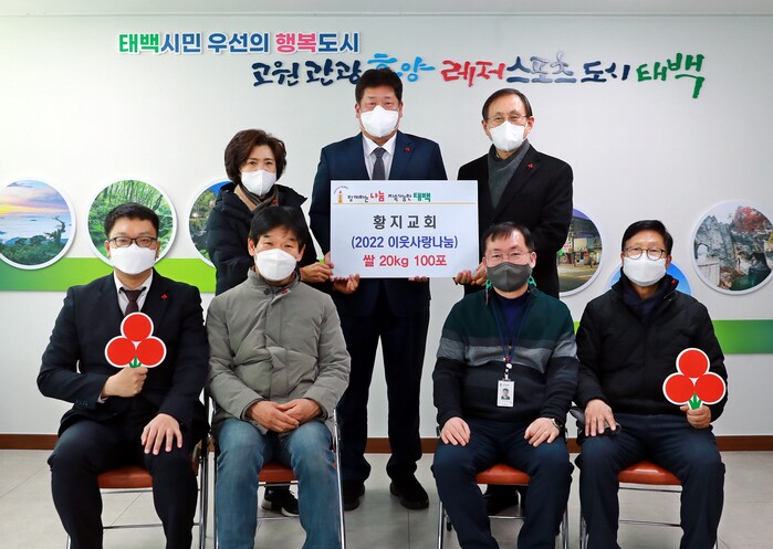 [로컬세계=박상진 기자]강원 태백시 소재 황지교회(담임목사 김종언)는 지난 20일 태백시청을 방문하여 ‘희망2023나눔캠페인’ 이웃사랑나눔 후원품으로 백미(20kg) 100포(600만 원 상당)를 기탁했다.