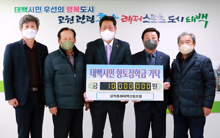 [로컬세계=박상진 기자]강원 삼척동해태백산림조합은 지난 16일 태백시청을 방문해 지역인재육성에 써달라며 장학금 1000만원을 기탁했다.
