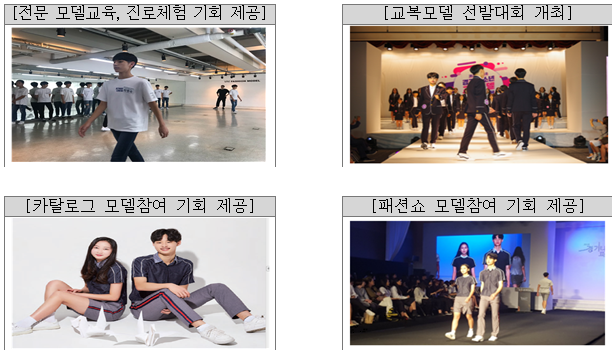 아울러 올해 섬유기업과 협업해 새로 개발한 ‘아워니트’ 교복을 홍보하는 카탈로그 촬영과 오는 10월 킨텍스에서 개최되는 교복 패션쇼에서 모델로 무대에 설 수 있는 특전도 주어진다.