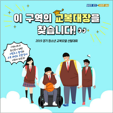 경기도는 오는 10일 오후 1시부터 양주 경기섬유종합지원센터 컨벤션홀에서 청소년 참여형 ‘2019 경기 청소년 교복모델 선발 및 체험 행사’를 개최한다고 8일 밝혔다.
