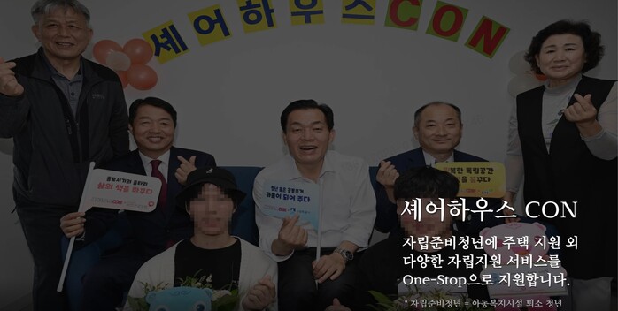 ‘자립준비청년 셰어하우스 CON’은 정부 주거지원의 사각지대에 놓여있는, 아동복지시설에서 만기·중도 퇴소한 29세 이하 청년들에게 임차료 없이 2년 동안 안정적으로 생활할 수 있는 공동 주거 공간을 제공하고, 자립 활동을 지원하는 것이다. 수원시는 LH의 매입임대주택을 활용해 권선1동·매탄4동 다세대주택에 셰어하우스 CON을 조성했다.