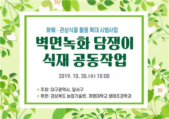 이번에 진행되는 화훼·관상식물 조성 시범사업은 30일 오전 10시 달서구 용산동 906번지 일원에서 계명대학교 학생 및 교수, 시·도 및 구청관계자, 시민 등 100여 명이 참여해 담쟁이, 아이비 등 관상식물 2000그루를 심는다.