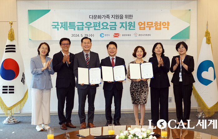 [로컬세계=글.사진 전경해 기자]강원 춘천시와 춘천우체국, 춘천시가족센터가 업무협약에 따라 다문화가족 50가구에 국제특급우편 10만원을 지원하기로 했다.