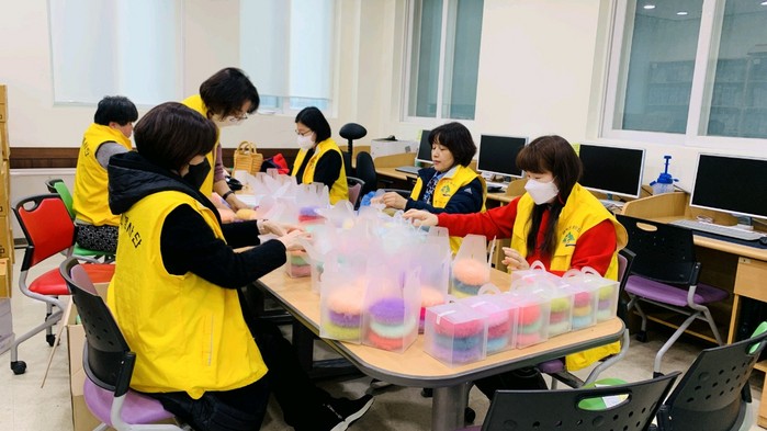 [로컬세계 박상진 기자]강원 태백시 문곡소도동 태백산봉사단(단장 전제봉)은 22일 관내 저소득 취약계층을 대상으로 핸드메이드 수세미 나눔 행사를 개최했다.
