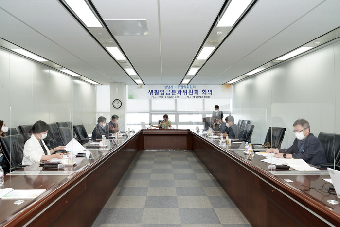 | ▲성남시 노동권익위원회 생활임금 분과위원회가 내년도 생활임금안 심의 중이다. 성남시 제공 |