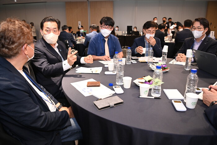 ▲ 지난 9월 이재준 수원특례시장이 기업인들과 간담회를 열어 기업지원 방안에 대해 이야기를 나누고 있다. |