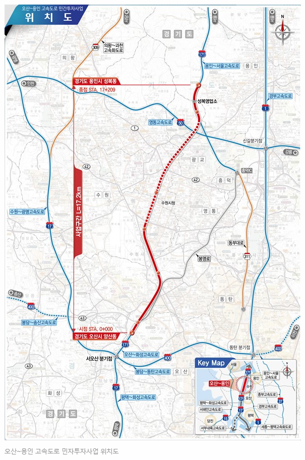 | ▲‘오산~용인 고속도로’ 민간투자사업 위치도. |