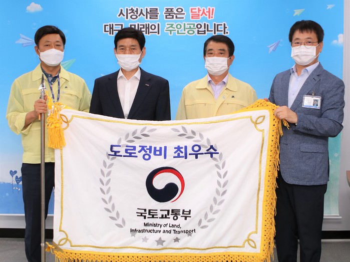달서구는 노후도로 보수 및 차선정비, 도로안전시설물 유지보수, 불법 도로점용물 정비 등을 통해 쾌적하고 안전한 도로환경을 제공한 공로가 높이 평가돼 최초 최우수 기관으로 선정돼 7월 국토교통부 우승기와 함께 기관표창을 받았다.