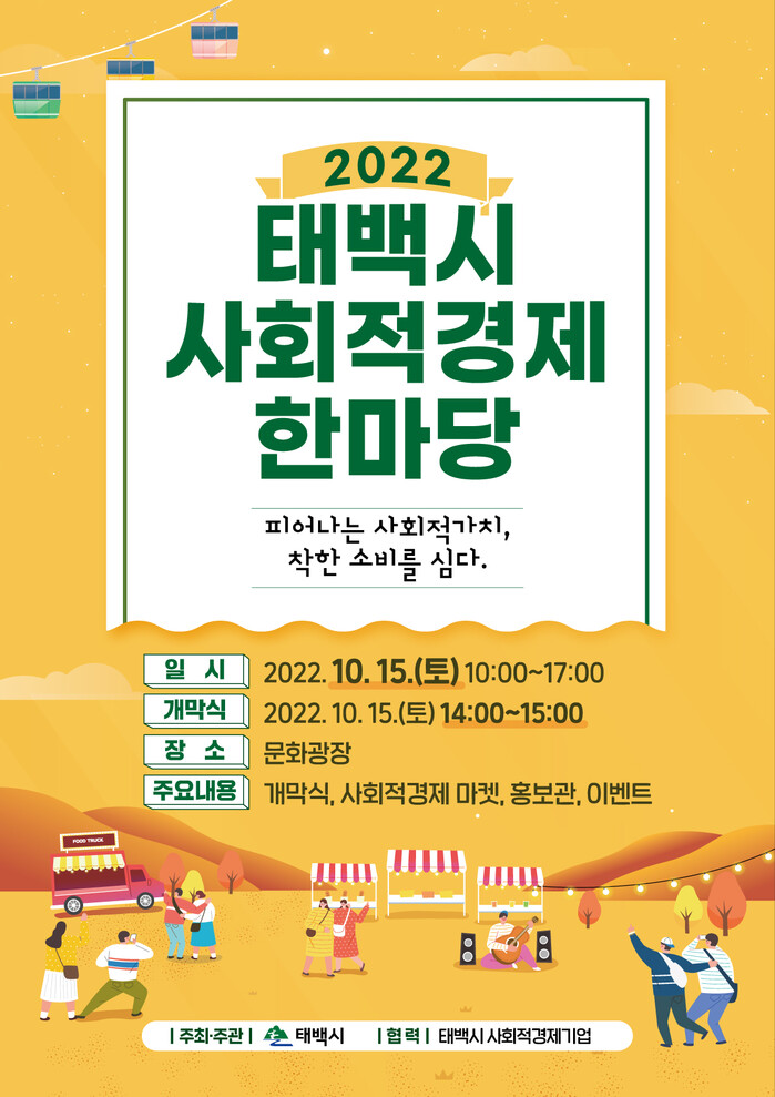 [로컬세계=박상진 기자]강원 태백시는 오는 15일 태백 문화광장에서 ‘2022 사회적경제 한마당 행사’를 개최한다고 13일 밝혔다.