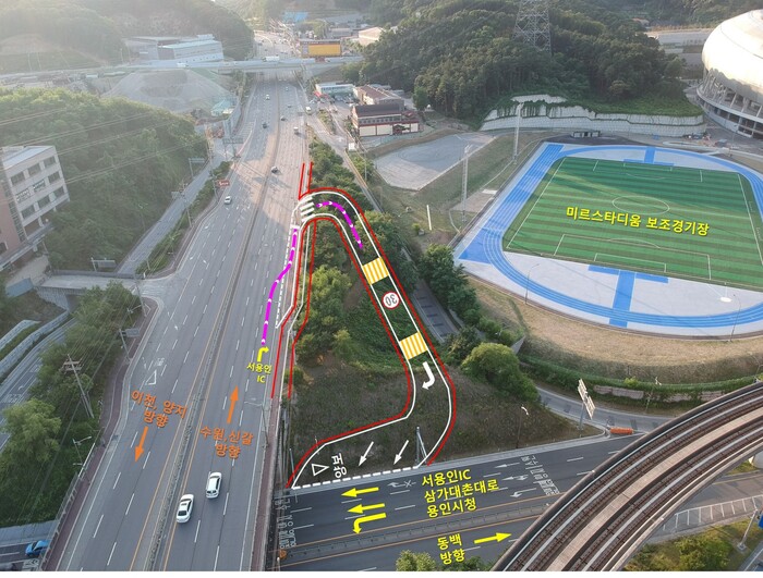 ▲ 용인특례시가 중부대로 삼가동에서 서용인IC로 연결되는 P턴 진입로를 신설할 계획이다. 용인시 제공 |