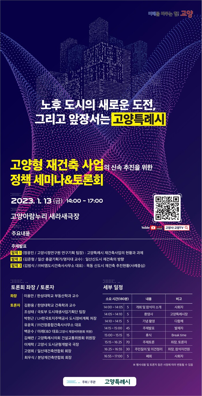 토론회는 고양아람누리 새라새 극장에서 ‘노후 도시의 새로운 도전, 그리고 앞장서는 고양특례시’라는 주제로 열릴 예정이다.