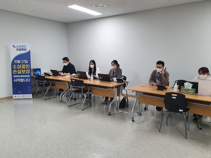 시는 지난달 27일부터 시작된 온라인 신청이 어려운 소상공인을 위해 수정구 수진동 수정커뮤니티센터 지하 1층에 손실보상 오프라인 접수처를 설치했다.
