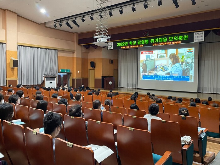 남부교육지원청은 지난 2017년도부터 ‘학생 감염병 종합대책’에 따라 노로바이러스, 메르스, 코로나19 등 학교의 감염병 대응 능력을 강화하기 위해 매년 모의훈련을 실시하고 있다. 올해는 코로나19 상황이 완화되어 모의훈련을 대면으로 실시한다.
