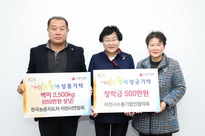 이천시수출기업인협의회, 한국농촌지도자 이천시연합회. 이천시연합동문회, MG이천새마을금고, 한국나눔연맹 등 5개 기관‧단체가 한자리에 모여 지난 13일 기탁식을 가졌다.