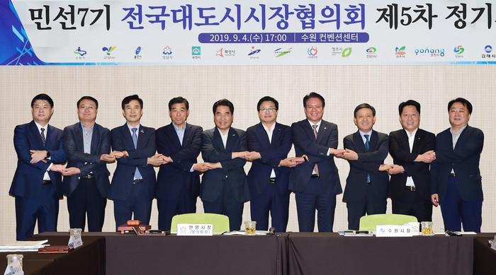 민선 7기 전국대도시시장협의회는 수원시를 비롯해 안양·고양·창원·용인·성남·부천·청주·화성·남양주·안산·전주·천안·김해·포항시 등 인구 50만 이상 15개 대도시의 협의체다. 지난 4월 인구 50만 명을 돌파한 평택시는 예비회원 도시다.