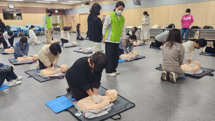 이번 교육은 대구응급의료협력추진단 소속 전문강사가 참여한 가운데 응급상황 발생 시 행동 요령과 심폐소생술 방법 및 자동심장충격기 사용법 등에 대해 실습 위주로 진행됐다.