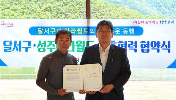 이번 성주아라월드와의 상호 협력 협약은 지난 5월 3일 달서구와 성주군, 양 자치단체가 맺은 자매결연에 이어 처음으로 민간까지 확대한 상호 교류로 상생발전과 실질적 주민 행복을 위해 마련됐다.