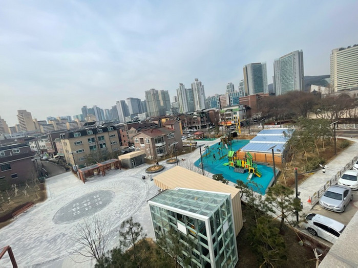 주차장 위 어린이공원은 놀이터 시설을 재정비했다. 파고라, 등의자, 앉음 벽 등을 설치해 시민들이 휴식을 취할 수 있는 공간 기능을 더했다.