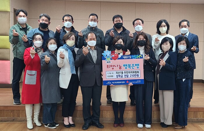 [로컬세계=박세환 기자] 대구 수성구 지산1동 주민자치위원회는 중·고등 학생 7명에게 장학금을 전달해 달라며 210만원을 지산1동 행정복지센터에 기탁했다.