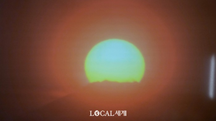 ▲16일 일본 후지산 정상에 석양이 걸려 있다. ©로컬세계 |