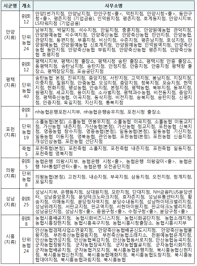 ◆지류형 지역화폐 판매처 현황 (중앙회/단위농협)