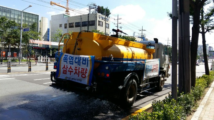 폭염주의보 발령 시 3대(관용 1대·임차 2대), 폭염경보 시 4대(관용 1대·임차 3대)를 운영하며 고농도 미세먼지 발령 당일은 별도로 3대(임차)의 살수차량이 추가되어 운행을 한다. 팔달로, 원대로 편도 구간, 달서천로, 와룡로, 북비산로 왕복 구간 등 총 12개노선 59.3㎞ 와 어린이집, 학교 등 주변도로를 노선별 1일 1회 이상 살수 작업을 시행한다.