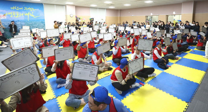 부서 대항전은 부서 및 동별 2인 1조로 협력해 문제를 푸는 방식으로, 선배의 경험과 후배의 순발력이 시너지 효과를 발휘해 멋진 팀플레이를 엿볼 수 있었다. 부서 대항전에서는 최종 살아남은 사회복지과 팀이 우승을 차지했다.