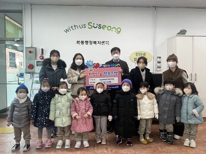 [로컬세계=박세환 기자]대구 수성구 파동 국공립 수성아이파크어린이집(원장 김은영)은 지난 7일 어려운 이웃을 위해 써 달라며 성금 45만1220원을 파동 행정복지센터에 전달했다.