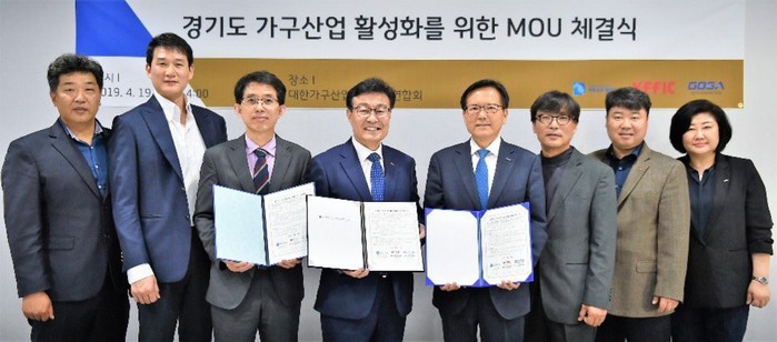 경기도는 대한가구산업협동조합연합회, 경기도경제과학진흥원과 19일 오후 부천시 소재 대한가구산업협동조합연합회 회의실에서 이 같은 내용의 ‘경기도 가구산업 활성화를 위한 협약’을 체결했다.